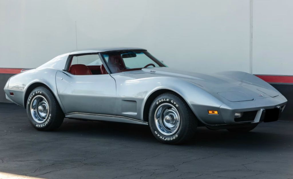 1006W..1977 Corvette Time Capsule Coupe with removable T-Tops, L82, 4 speed, 10,021 actual mile time-capsule in pristine new original condition. Factory Silver paint with Red leather interior. Multiple NCRS Top Flight awards including a Regional Top Flight. Options include factory air conditioning, Gymkhana suspension, M21 close-ratio 4-speed transmission, leather, tilt-n-telescopic steering column, rear window defogger, power steering, power brakes, power windows, AM/FM stereo radio, luggage rack and roof panel carrier, floor mats, rally wheels and raised white lettered tires. Most all factory correct components. Documented with the GM build sheet, owner's manual envelope with warranty pamphlets/maintenance schedule brochures, sales brochure, and NCRS awards. Looks, runs and drives like a new 1977 49 year old car. $49,000.00