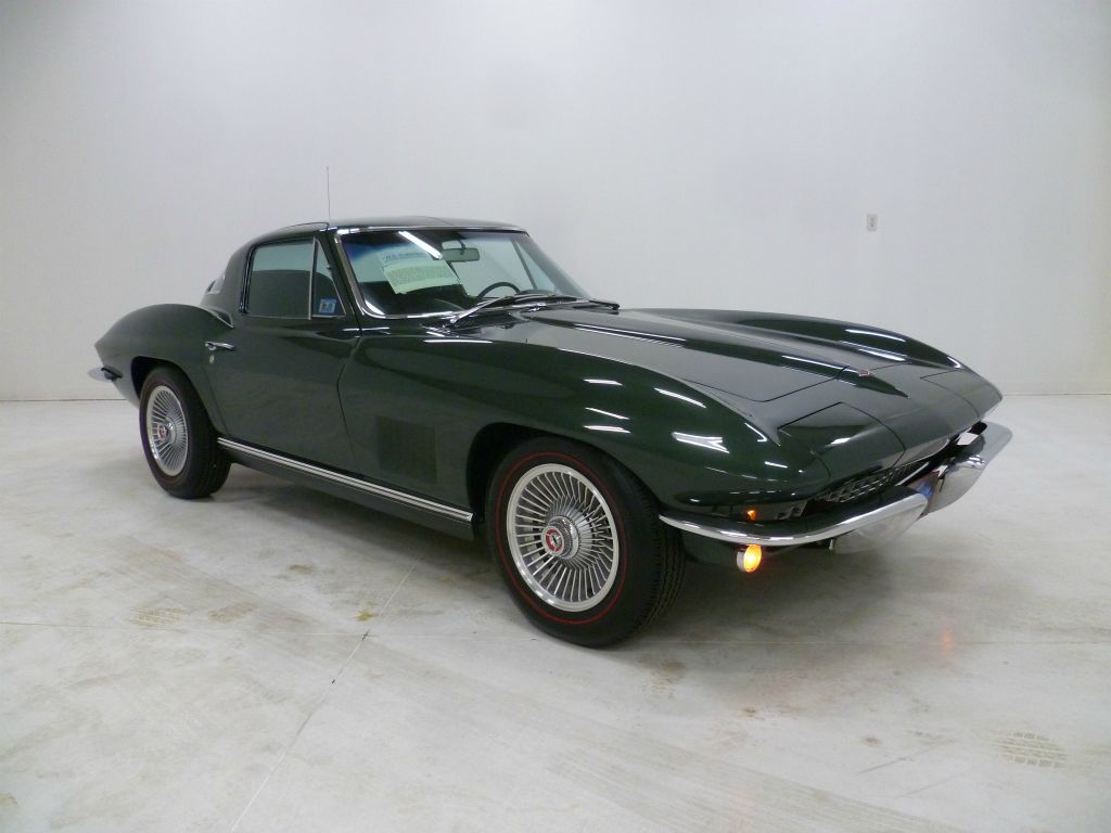 1019U..1967 Corvette Stingray Coupe, 327-300 hp, 4 speed, numbers matching original motor, transmission and rear end but dressed-out as a 350 hp, also has factory original body/trim tag, and working odometer showing 29,057 miles. Goodwood Green paint with matching Dark Green interior. Body-on restored but appears body-off restored in excellent condition with rebuilt motor and rebuilt suspension including trailing arms and U-joints. Also has an affirmation by CCAS/Grenning as to the legitimacy and originality of the engine block, stamp pad, and the engine stamp. Fun Fact: Goodwood Green was the most popular color in 1967 with 4,293 produced! Optioned with leather, M-20, posi, SS brakes, AM/FM radio, tinted glass, B.O. aluminum wheels and two-year old red stripe radials. Most all factory correct type components including the spare, replacement jack, seat belts, washer system, shifter, shielding, air cleaner, spark plug shields, hoses, hose clamps, expansion tank, gas door assembly, glove box door, owners manual, and sales brochure. Documented with the CCAS/Grenning Engine Stamp Affirmation. Production date of April 26th, 1967 and delivered new by Chopping Chevrolet in Riverton, WY (dealer code 149 in Zone 36) per the official NCRS/GM Shipping Data Records (SDR). From past owner of 35-years. Looks, runs, and drives excellent. CC:+2 Consigned to Mecum Kissimmee Collector Car Auction January 15th - 17th, 2026